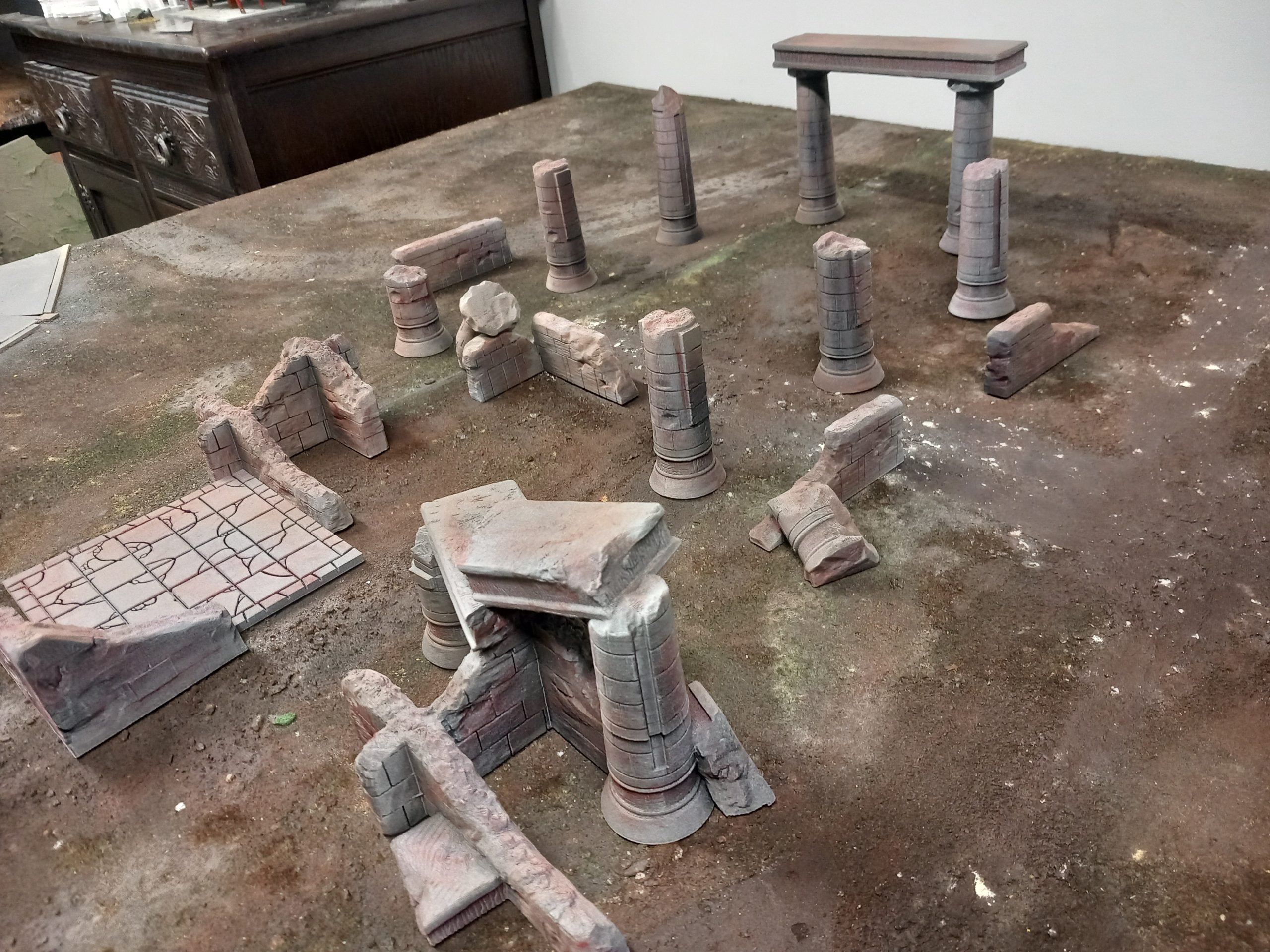 After Yavin4 I wanted to do a different world that wouldn't take long and fit a force I already have. I spotted skullforge studios had a sale on gor stl files and they do ruins based on the night sisters. These ruins are from the ones seen in the Asohka show that were all white stone. I'm using them for Dathomir itself. Trandoshan hunters