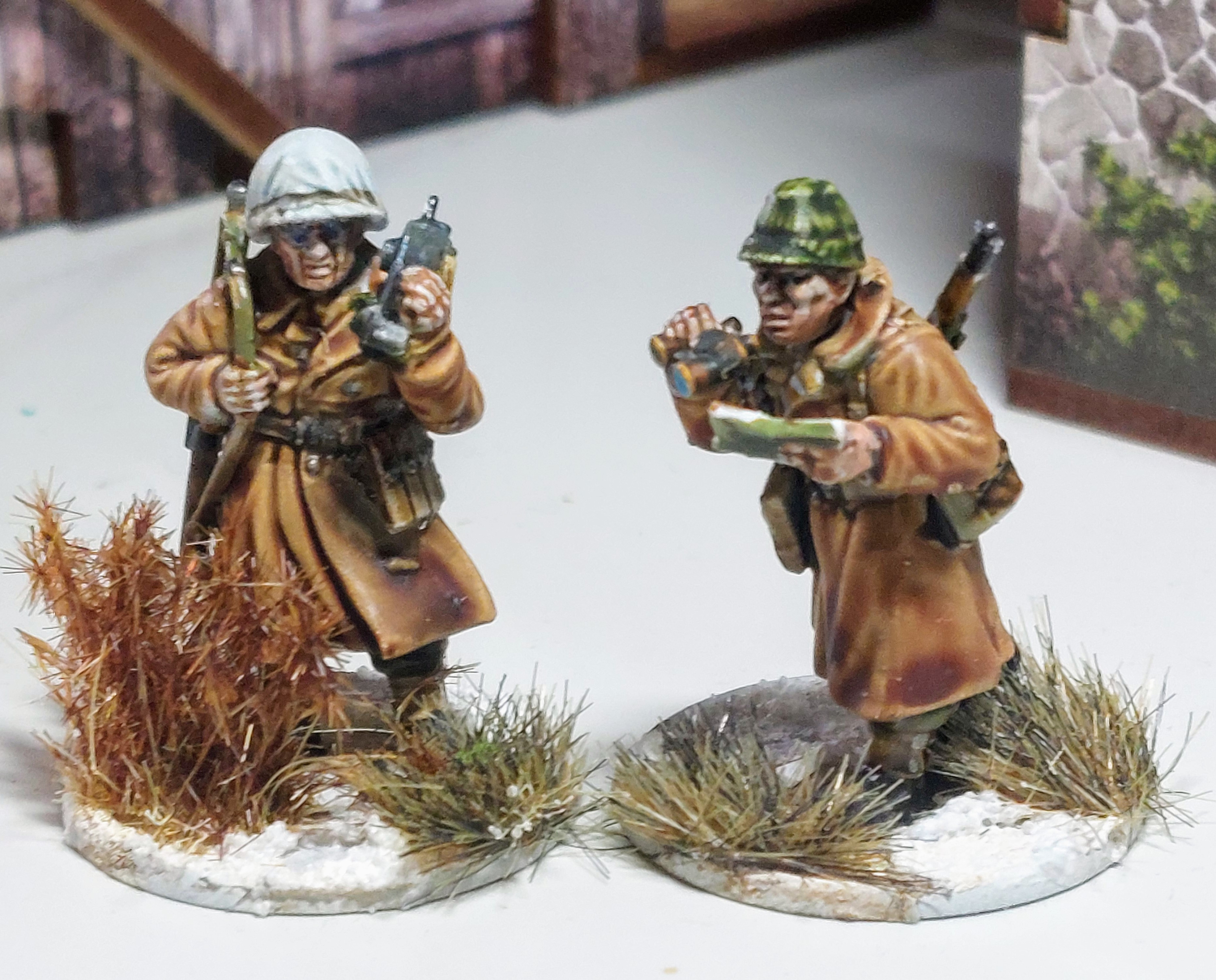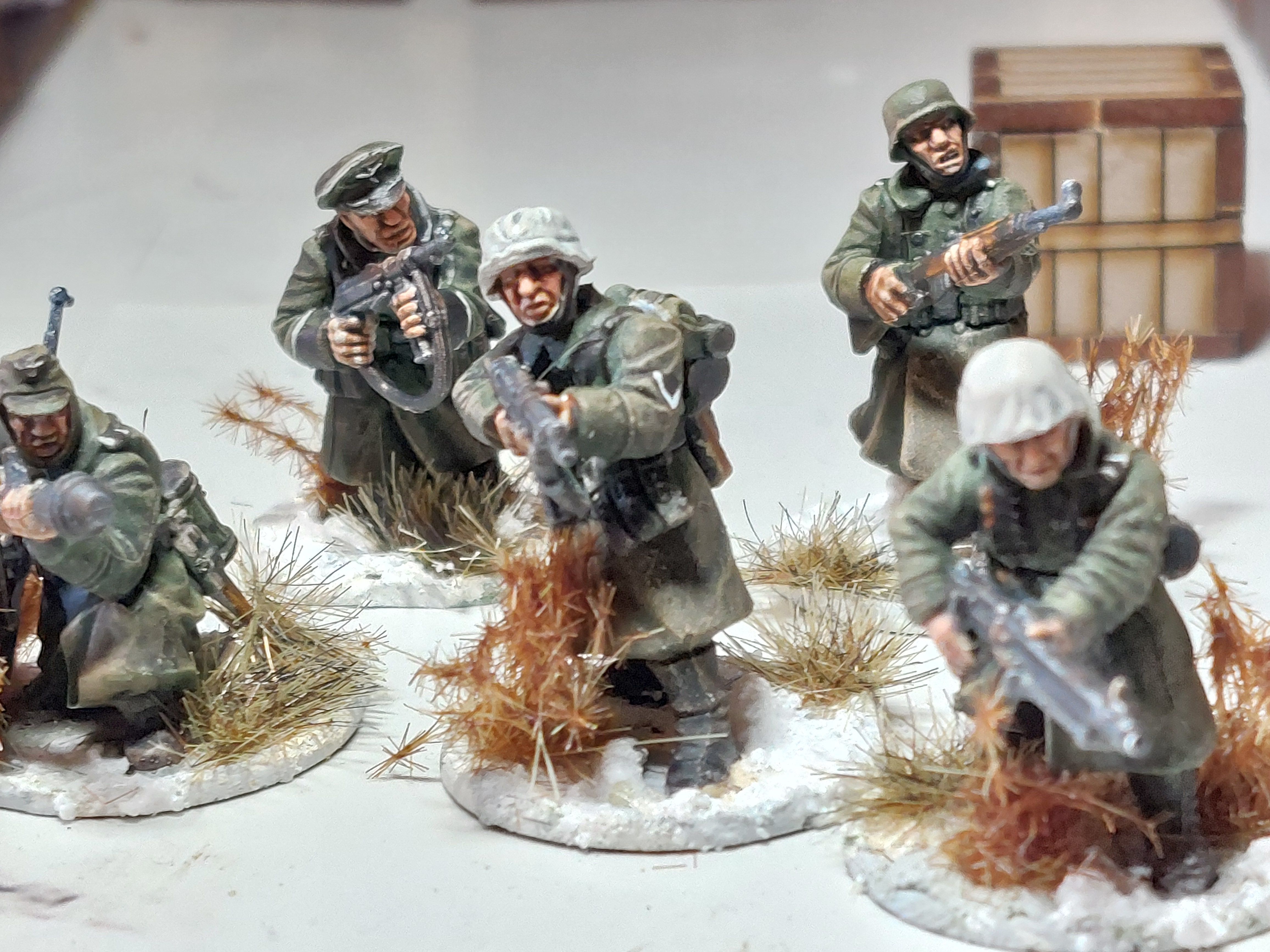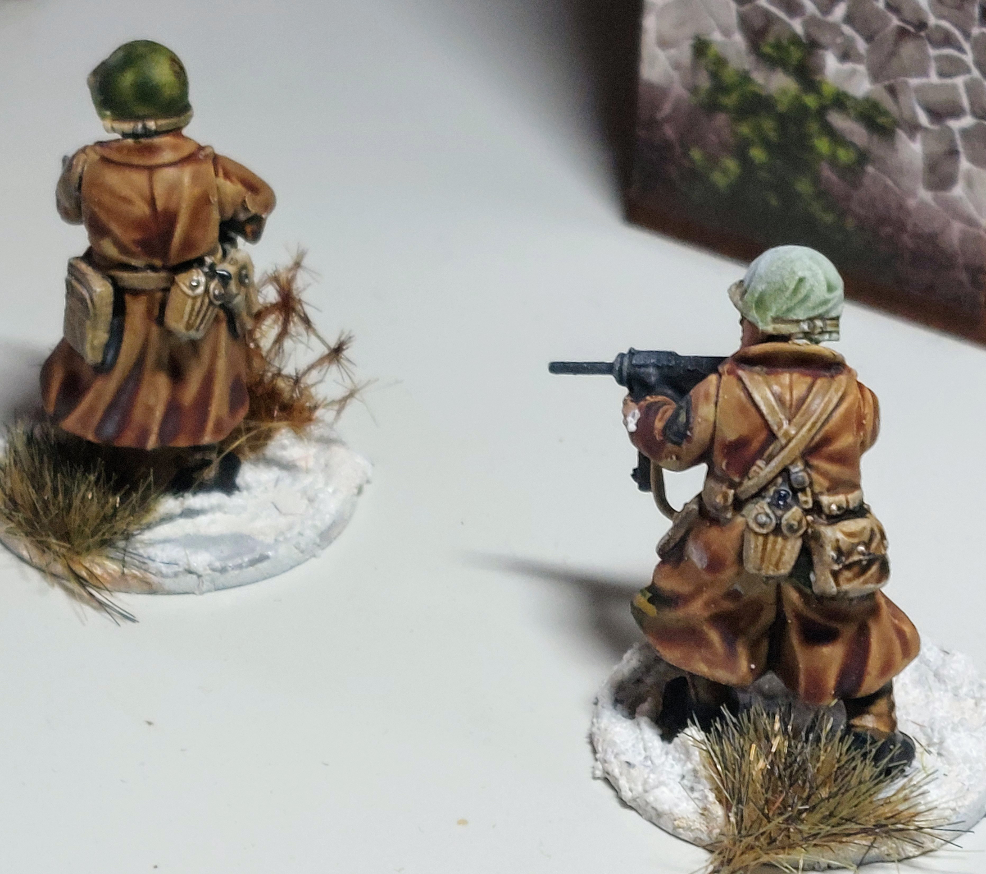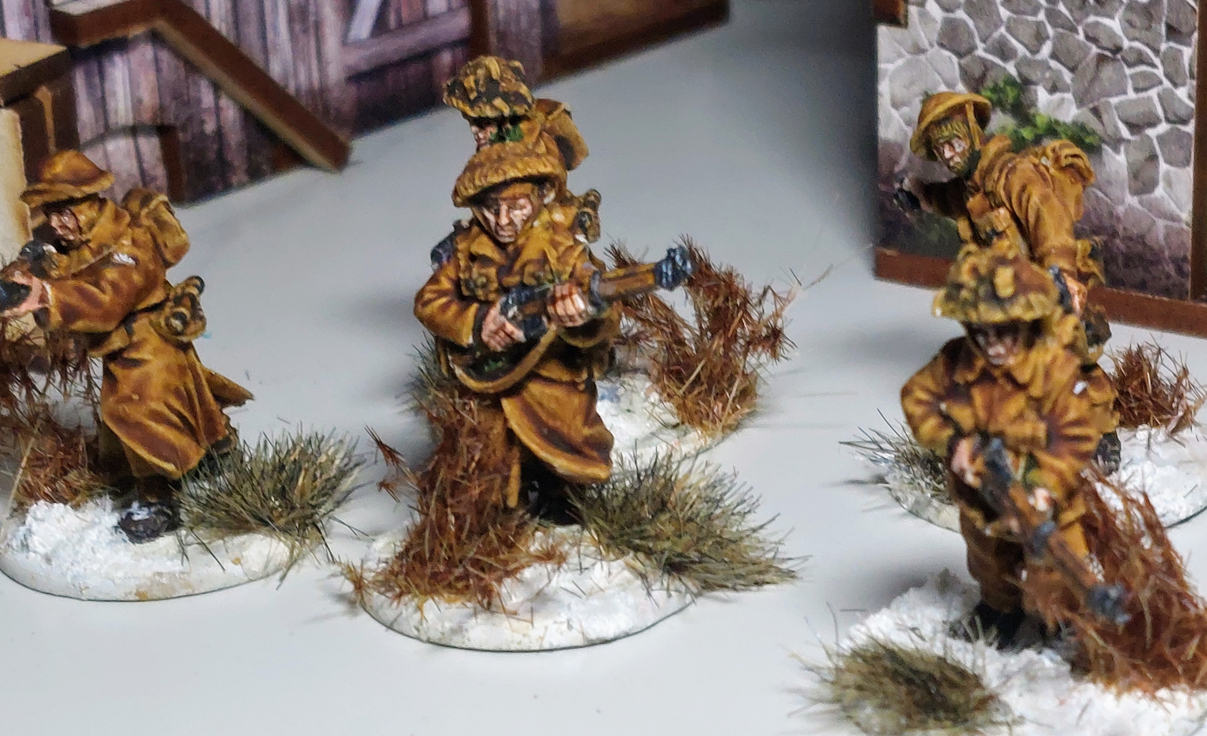 A Winter German Infantry squad in Greatcoats is done as is Winter British Squad.