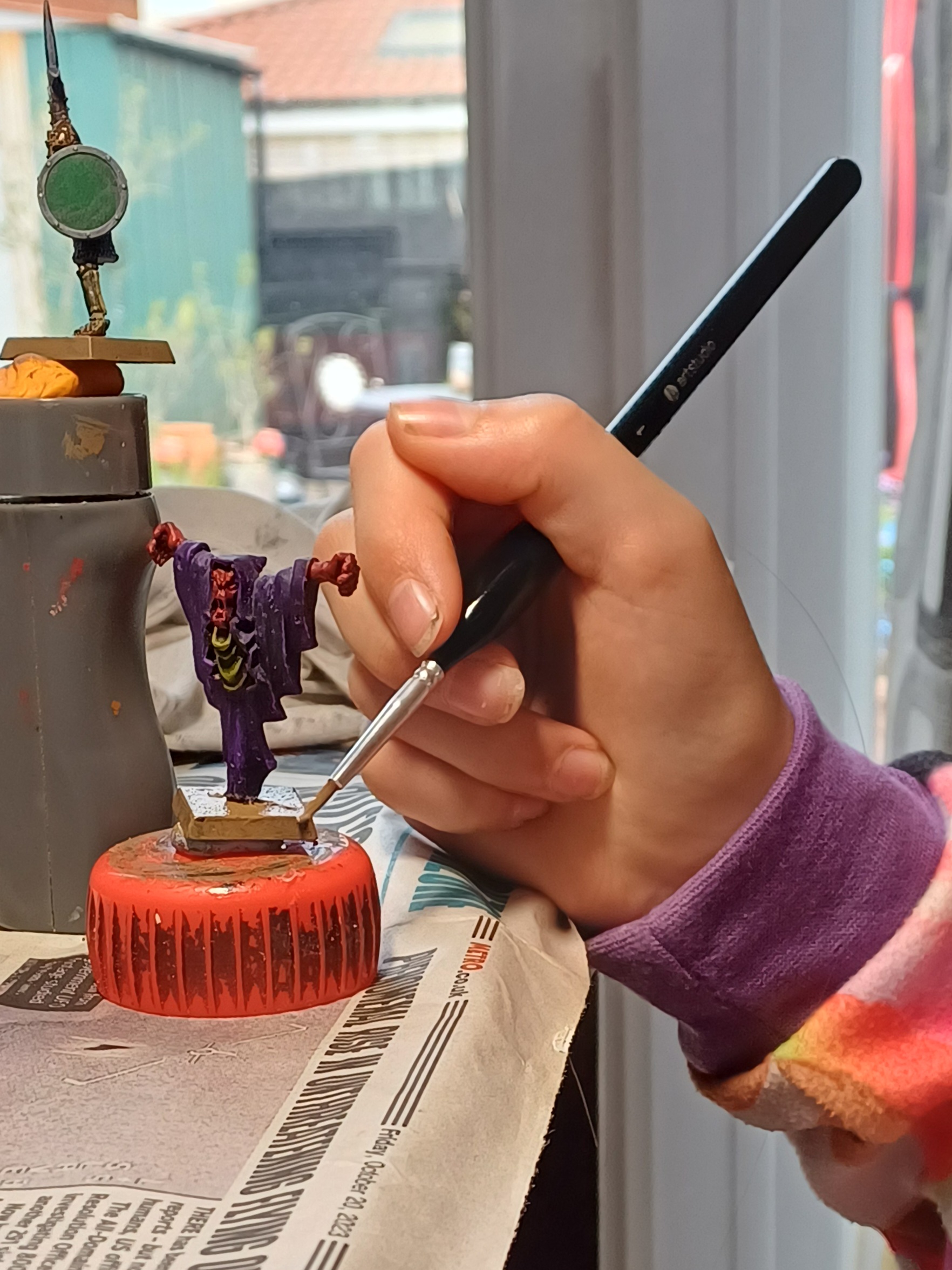 I showed her how to drybrush by doing the ghost. She then did a very good job on the skeletons. Now over to you
